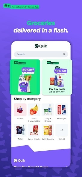 Get your groceries delivered in a flash with Quik Groceries and enjoy no delivery fee with Careem Plus.