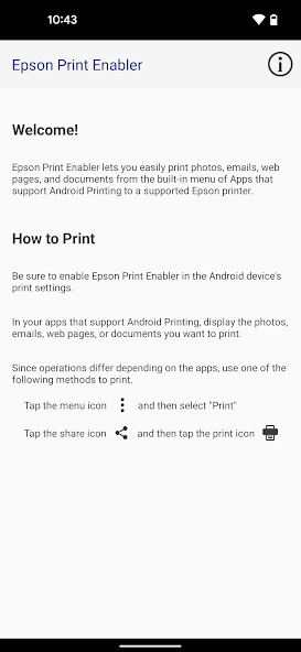 Epson Print Enabler lets you print from tablets and phones with Android version 8 or later. This Epson software enhances the built-in Android Printing system allowing you to print to a wide range of Epson inkjet and laser printers over Wi-Fi (see link for compatible printer list below). Once downloaded, you can easily print photos, emails, web pages and documents from the built-in menu of Apps that support Android Printing.