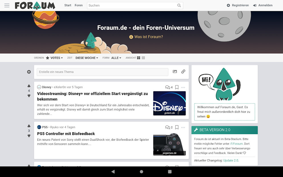 Foraum ist ein deutschsprachiges Internetforum mit Fragen & Antworten, News und Diskussionen zu allen vorstellbaren Themen. Von Gaming über Musik bis hin zu Sport und Politik - jetzt beitreten und nichts mehr verpassen! Foraum = Reddit auf Deutsch.