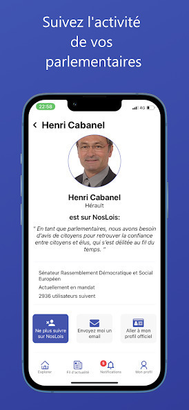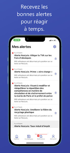 The NosLaws app allows you to follow your parliamentarians and the laws they are working on: you can vote and comment to influence each new law and build the future that suits you for your country.