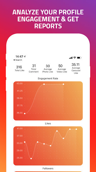 Track your top followers, lost followers, ghost followers, blockers,mutual followers - removed likes, comments, taggs and deleted accounts. Discover who likes and/or comments on your posts but do not follow you. Find out which Followers like the most of your posts and much more!