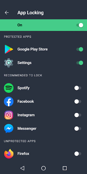 ✔ Блокировка приложений с помощью PIN-кода, графического ключа или сканирования отпечатка пальца