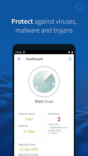 Protect your smartphone or tablet against malicious software of all kinds, such as viruses, Trojans, spyware, or stalkerware. Directly during the installation of a new app or for existing software, two scan engines ensure that all malware is detected, with no exceptions. Thanks to a cloud connection, your protection against viruses is always kept up to date.