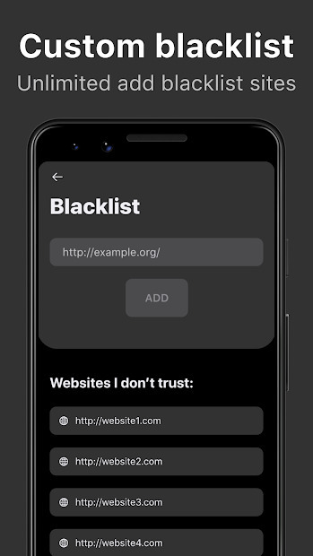 Our powerful app protects your device from Internet threats while you’re browsing by blocking phishing. With BlackList you can block all sites that you consider dangerous or unnecessary to use!
