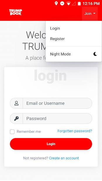 TrumpBook USA was created to allow pro-Trump followers to speak freely about American issues facing our 45th President, Donald J. Trump. This app is not authorized, paid for or by any candidate, candidate committee, political affiliation or lobby group. Is is strictly run by independent American Citizens