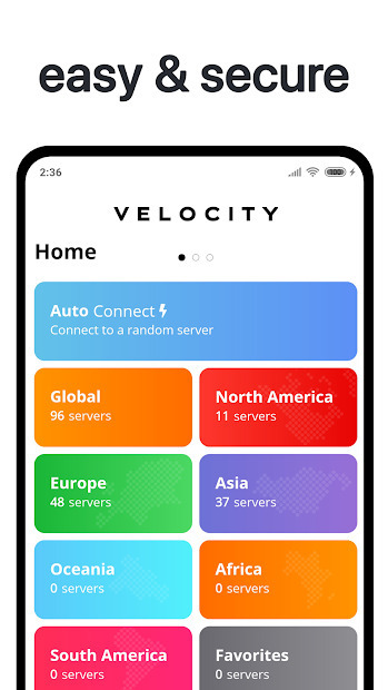 Velocity VPN delivers on speed and privacy, for a truly open and unrestricted internet.