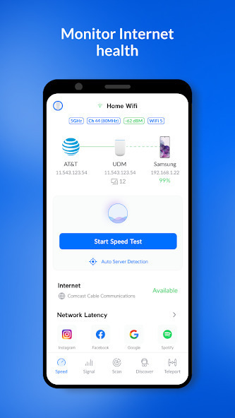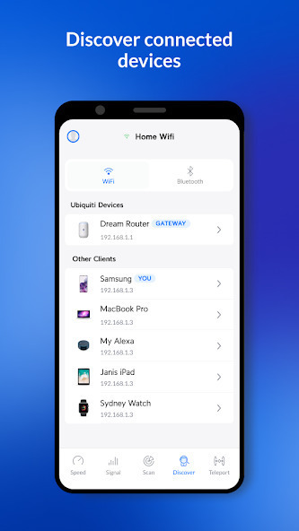 С помощью приложения вы с легкостью сможете обнаружить и анализировать устройства подключенные к вашей сети. WiFiman анализирует всю подсеть и отображает все доступные устройства и сервисы, используя протоколы Bonjour, SNMP, NetBIOS и UBNT.