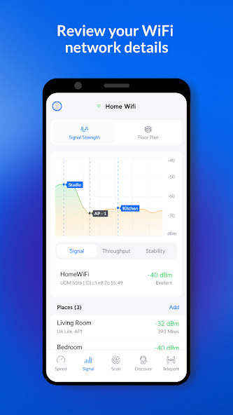 WiFiman идеально подходит для анализа Wi-Fi сетей, устройств Bluetooth LE, обнаружение новых устройств в сети и измерения скорости. Эти возможности доступны в удобном и элегантном интерфейсе пользователя, разработанным Ubiquiti Networks. WiFiman не содержит рекламы и является бесплатным.