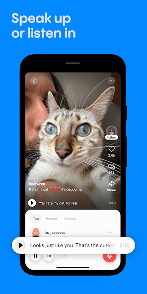 - Reply to posts, talk about what interests you and interact with friends through short voice notes and videos