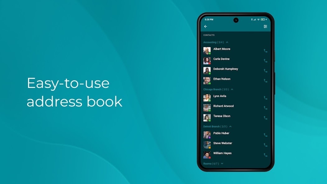 • Easy-to-use address book. Unified contact list across all your devices.