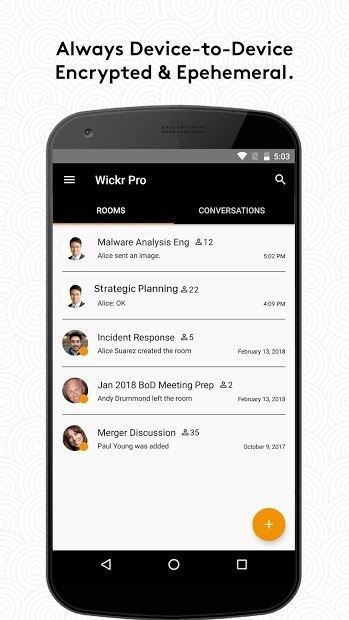 • Every message is encrypted with a new key using advanced vetted end-to-end encryption. Wickr never has access to your messages or your contact list.