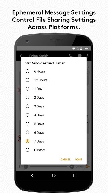 • Configurable Expiration Timer – Set the expiration time on all your messaging content.