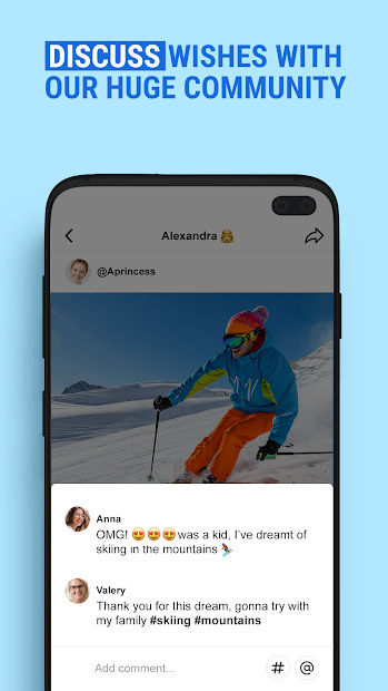 — Discover everyday inspiration and save your favorites, or create your own wishes.